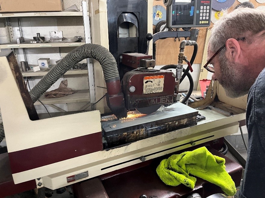 Once the builder is satisfied with your hardness the blade is either placed back on the CNC machine and/or a CNC Surface grinder where it undergoes any final shaping. Once your knife has its final shape it may be hand polish for a uniform appearance. The builder then selects your handle wood and if necessary looking for someone that is not doing anything to glue and press together.